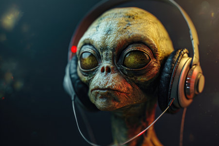 Close-Up of an Alien with Large Eyes in a Mysterious Sci-Fi Setting. High quality photo