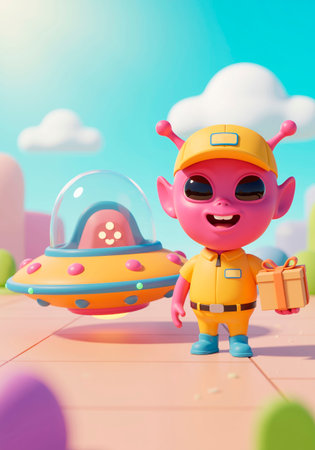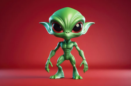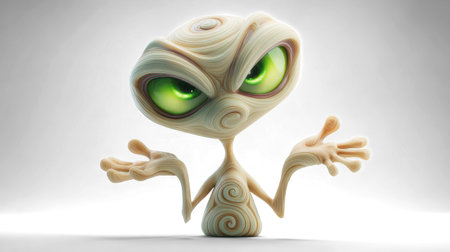 the extraterrestrial creature, depicted in a vibrant cartoon style, stands out against a pristine white background, showcasing its otherworldly features, including large, round eyes and a slender, elongated body, evoking a sense of playful sci-fi fantasy and futuristic adventure. ai generated