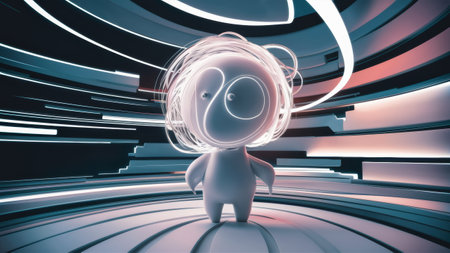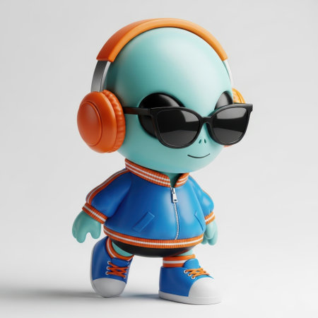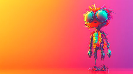 A cartoon alien dressed in a colorful jacket and tie, AI