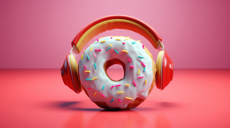 Headphone with donut as a concept for nutrition, music and culture. ASMR Stress-relieving sounds concept. Autonomous sensory meridional response is both a psychological and a physical experience. ASMR Mukbang. Generative AI