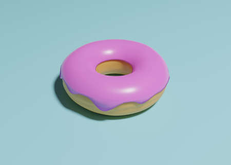 3D donuts on a purple background is a realistic sweet dessert with a top. 3D rendering