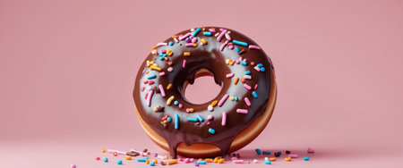 AI Generated. Delicious Chocolate Donut with Sprinkles on Pink Background