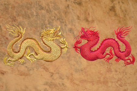 Gold and red dragons on brown texture