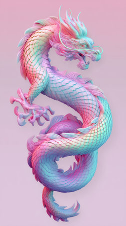 Chinese dragon on white background. 3D illustration. Copy space.
