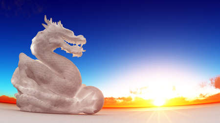 Dragon statue at sunset. 3D illustration. Fantasy and imagination.