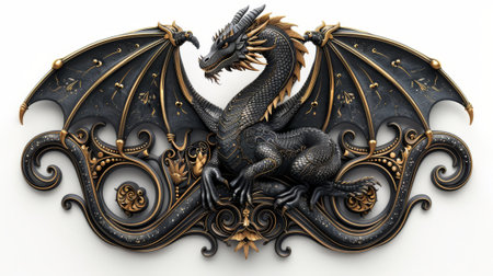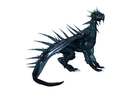 3D rendering of a fantasy black dragon isolated on white background