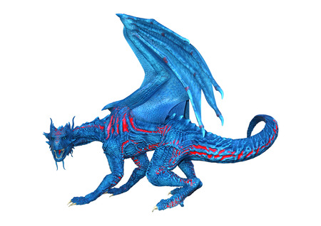 3D rendering of a blue fantasy dragon isolated on white background