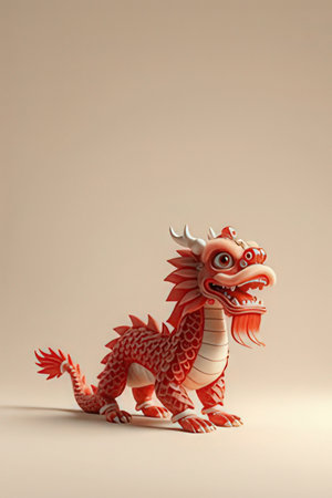 Chinese New Year dragon statue on white background. 3D illustration.