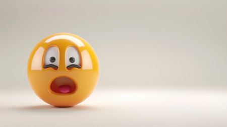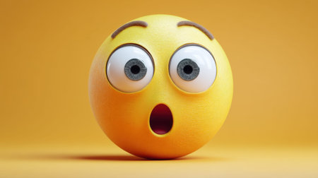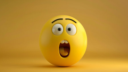 3d rendering of a yellow emoticon with a surprised expression.