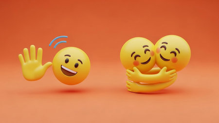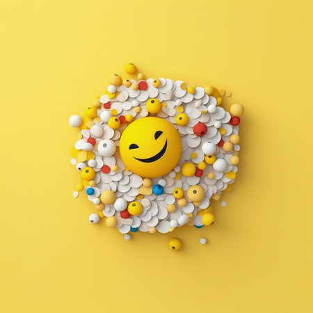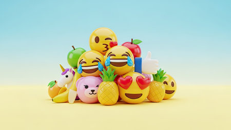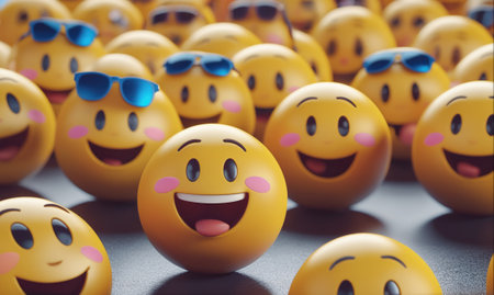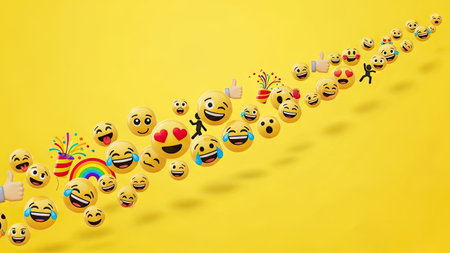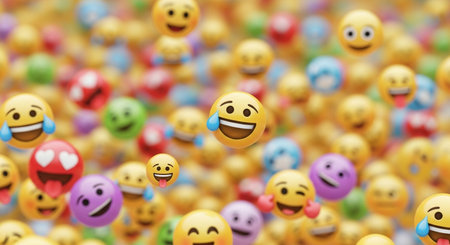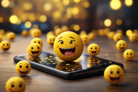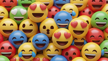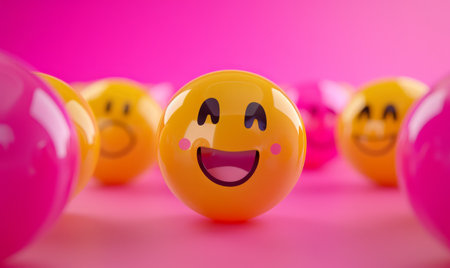 A group of happy emojis float in the air, radiating positivity