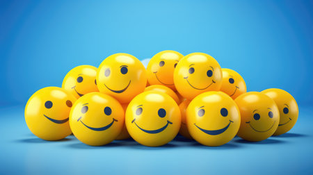 A lively collection of cheerful yellow smiley faces set against a bright blue background, creating a fun and playful atmosphere perfect for conveying joy and positivity.