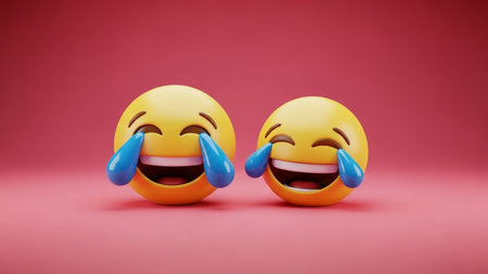 Cheerful emoticons on social media communication background, expressing happiness and laughter
