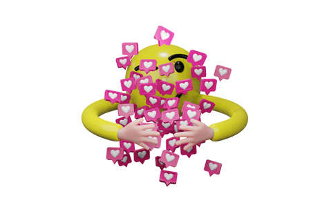 3d illustration of yellow emoticons with hearts flying out of them