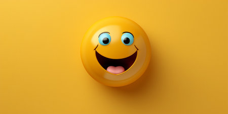 A cheerful minimalist face icon features a bright yellow color and a simple smiling expression, creating a joyful atmosphere.