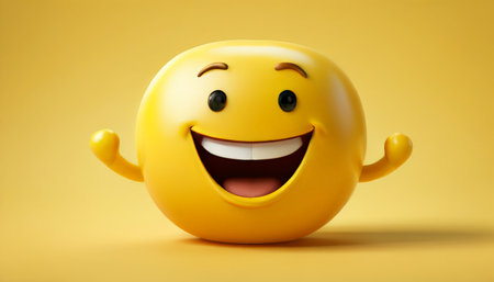 3d rendering of a glossy yellow emoji with a big smile expressing happiness
