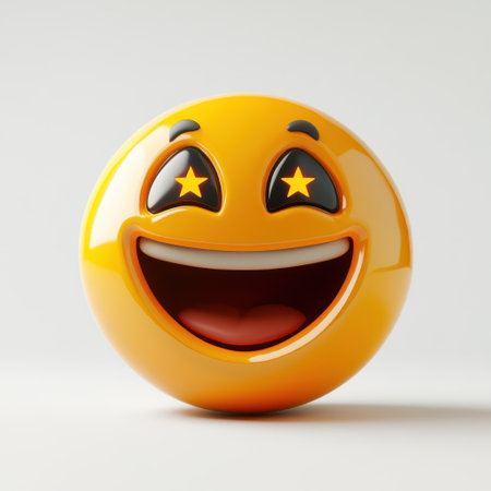 A yellow smiley face with two stars in its eyes. The smiley face is happy and excited, and the stars in its eyes add to the overall cheerful and playful mood of the image