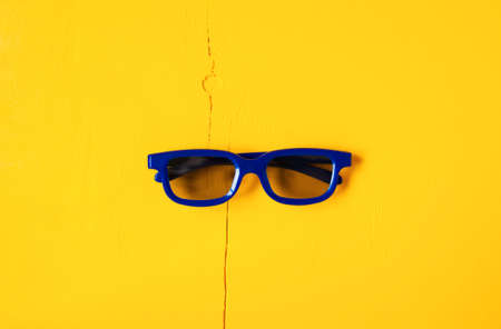 3D glasses on a yellow-white background. Top view