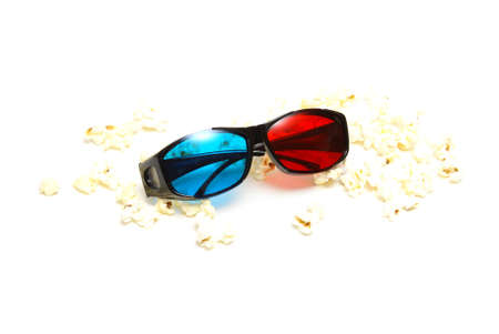 Movie items, 3D glasses and popcorn in a cup