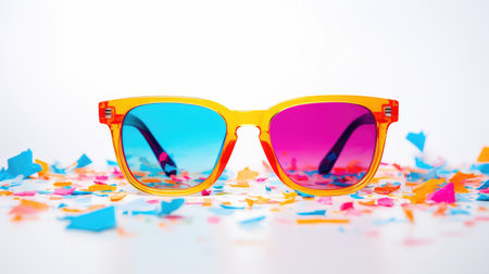A fun and creative composition of colorful toy blocks featuring miniature sunglasses, creating a playful and whimsical scene.