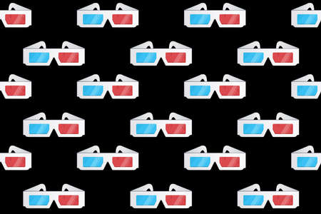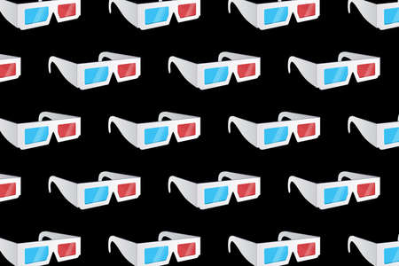 3d glasses vector seamless pattern isolated black