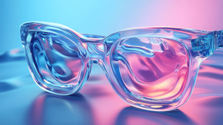 3D glasses on blue-pink background. minimalism. creative layout.