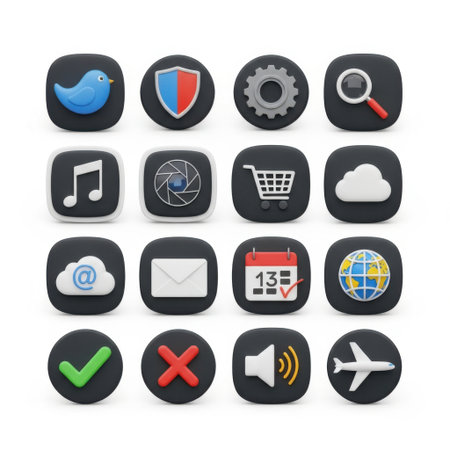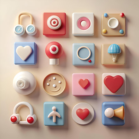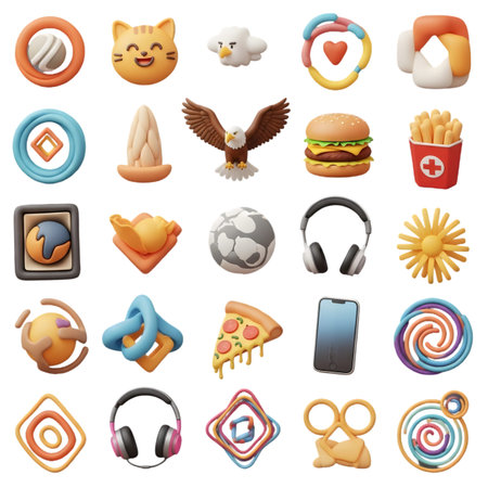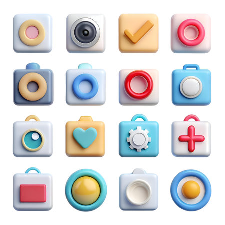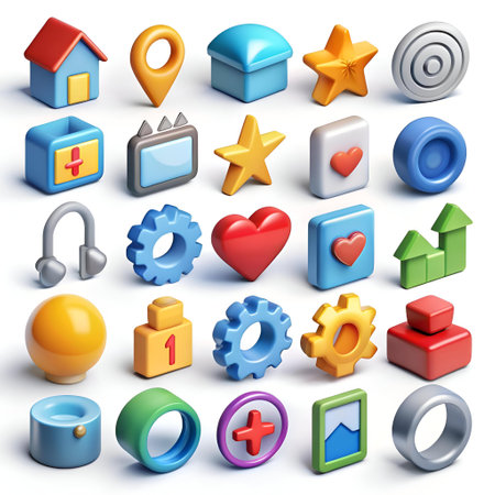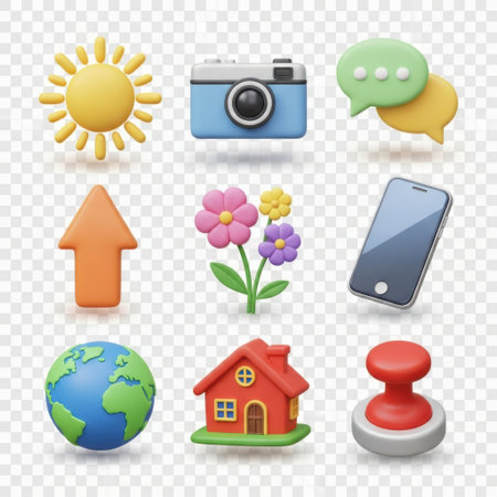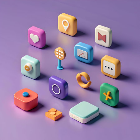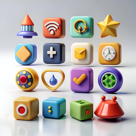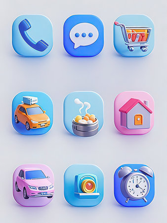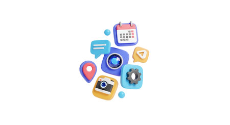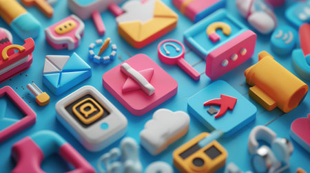 A colorful collection of 3D app icons with playful rounded edges. perfect for illustrating mobile apps. UI design. and technology concepts.