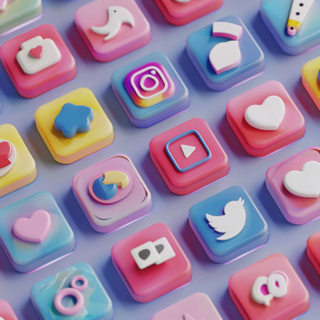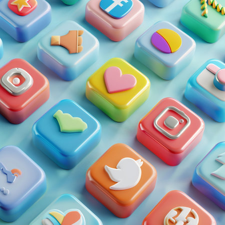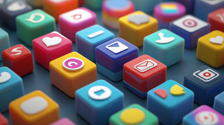 Colorful collection of app icons on a digital display showcasing modern technology and social media trends in vibrant colors