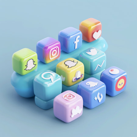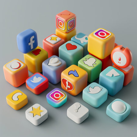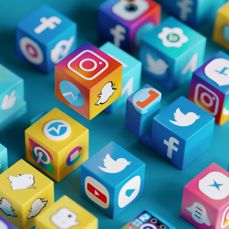 3d rendering of a group of colorful cubes with social media icons