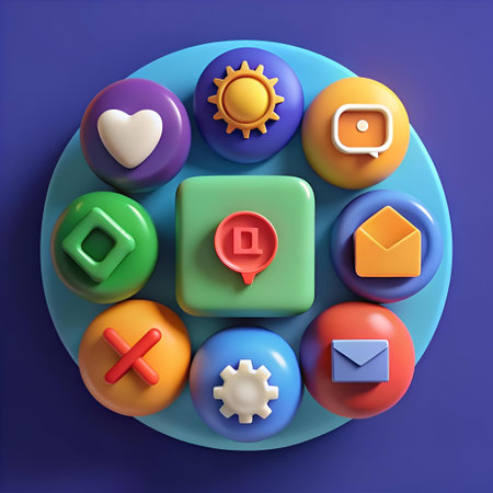 Colorful 3D icons representing various social media elements arranged in a circle. Perfect for digital marketing. social media campaigns. and app design.