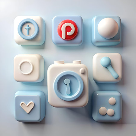 Colorful, 3D social media logos arranged on a blue background, ideal for marketing and advertising agencies.