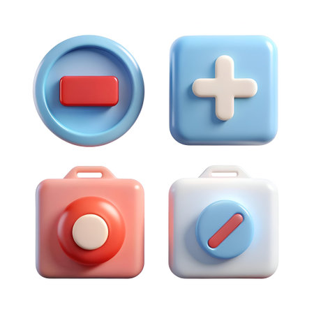 A set of four 3D icons representing basic mathematical operations: plus. minus. multiply. and divide. These playful. colorful icons are perfect for UI design. website graphics. and educational materials.