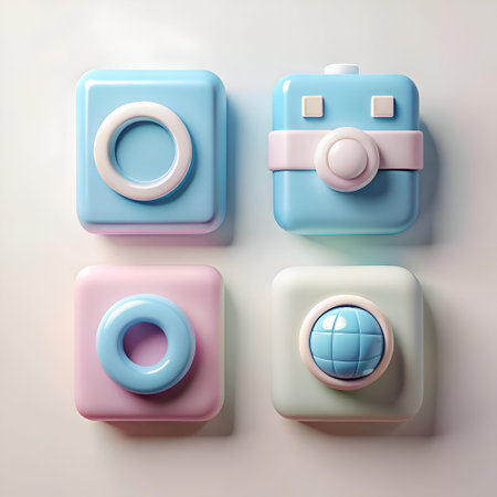 Cute and colorful 3D icons with a minimalist design. perfect for adding a playful touch to websites. apps. and social media. This set includes various symbols like cameras. hearts. buttons. and more!