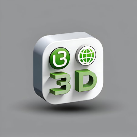 Modern and minimalist 3D icon representing a green 3D label with a globe and a B symbol perfect for websites apps and presentations.