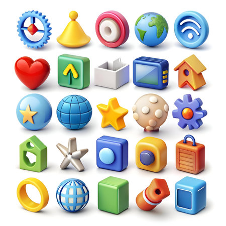 A vibrant collection of 3D icons in bold. geometric styles. perfect for adding a modern and playful touch to your designs.