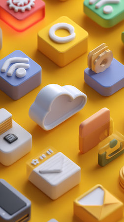 Colorful 3D icons representing modern tech, apps, and digital services.