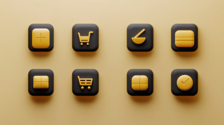 A stunning collection of user interface icons featuring elegant golden accents set against a dark background, perfect for enhancing digital projects and applications.