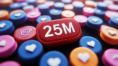 25 Million Social Media Notification With Like And Comment Icons On Pastel Background