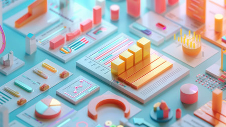 This image features a vibrant assortment of 3D shapes and colorful data visualization elements, ideal for enhancing reports and presentations.