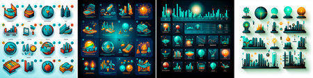 This vibrant data visualization features various charts and graphs, perfect for business presentations and analysis, showcasing trends and metrics in a modern design.
