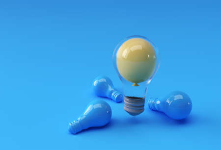 Yellow light bulbs on a blue background. 3D illustration. 3D rendering.