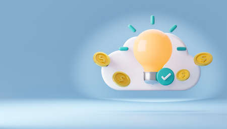 3D. hand holding a coin with a light bulb knowledge accumulation concept