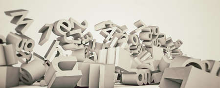 Abstract symbol or sign bunch of ABC character, typography, for web page, graphic design, texture, background. 3D render.