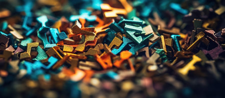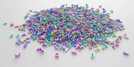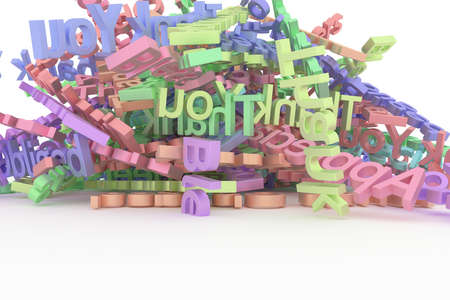 CGI typography, good for design texture or background, alphabet, letter of ABC. Colorful 3D rendering. Kindergarten, random, pile & mess.