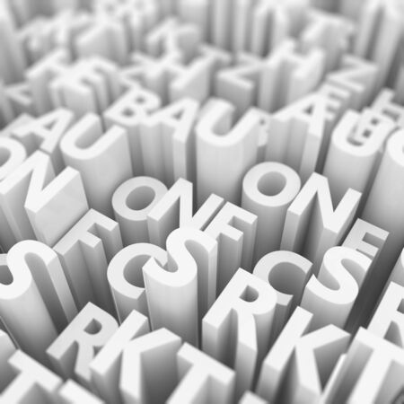 Abstract keywords cloud alphabetic character, CGI typography, for web page, graphic design, texture, background. 3D rendering.