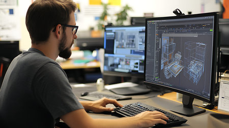 Exploring cutting-edge design with a focus on 3D modeling in a high-tech workspace.