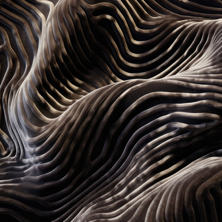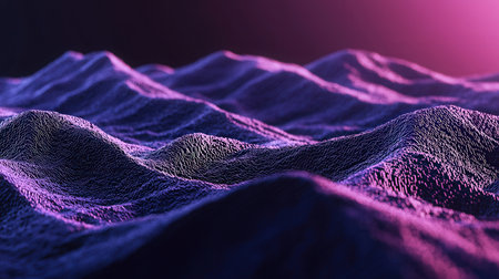 Beautiful abstract 3D surface with glitter sparkles, abstract 3d waves on surface. Black gray gradient, soft matte material with light inner glow. 3d render