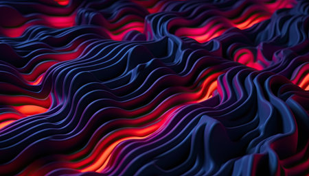Abstract 3d rendering of wavy surface. Futuristic background with dynamic waves.