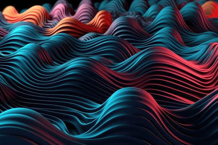 Abstract 3d rendering of wavy surface. Futuristic background design.