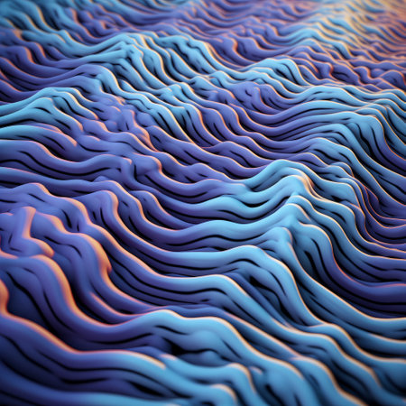 Abstract vibrant waves with yellow and blue ripple patterns. 3d render.