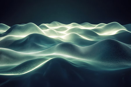 A captivating display of glowing waves forms an ethereal landscape under dim light, creating a serene atmosphere.